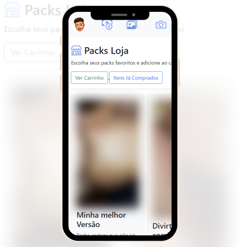 Escolha entre várias opções de packs (pacotes de conteúdo), fotos e vídeos por demanda sem mensalidades.